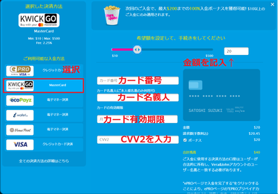 使い方は本当に簡単で、普通にクレジットカードで入金する際のプロセスと全く同じです。